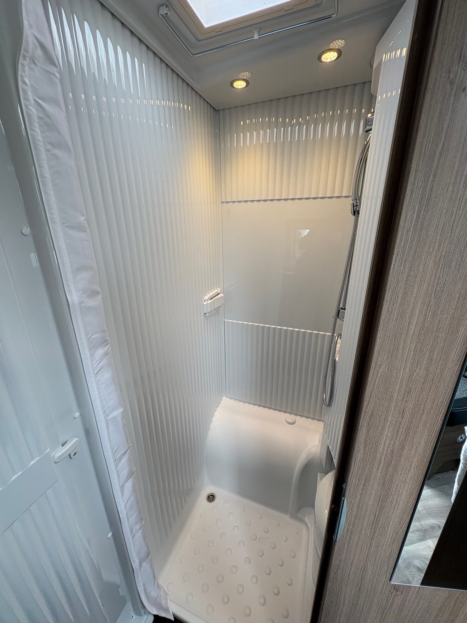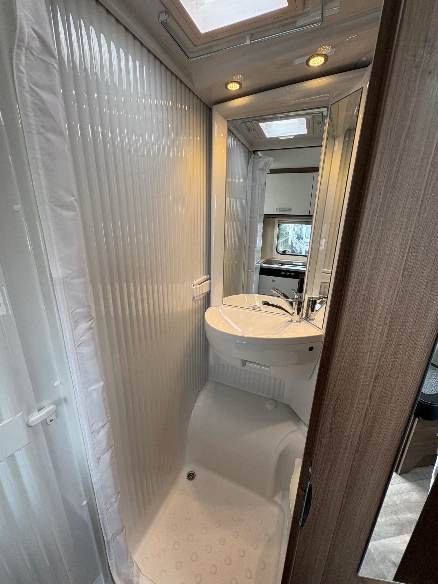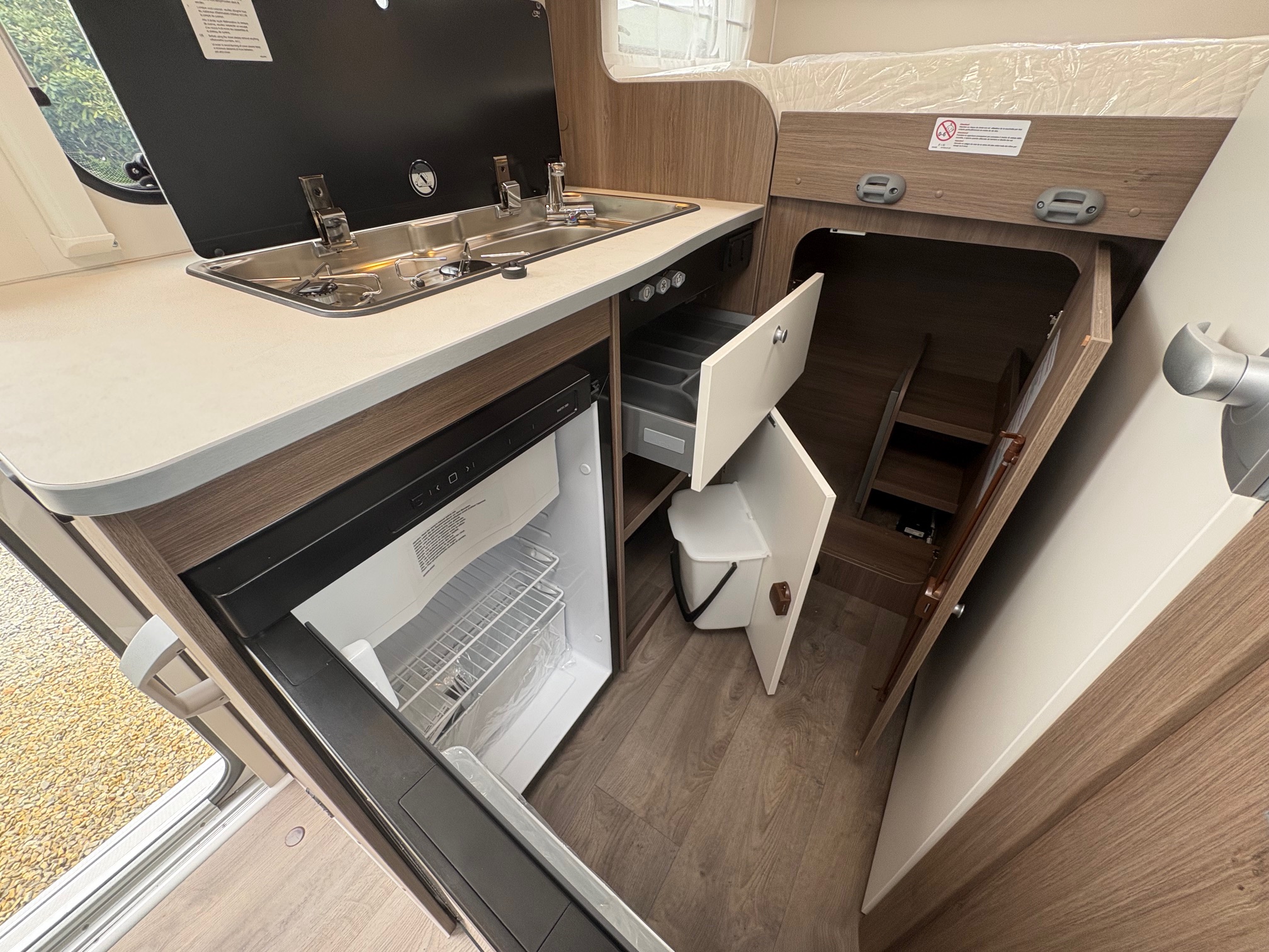Couleur extérieur gris Artense métalisée, Store plissés de cabine, Toit panoramique de cabine, Coloris spécifique des portes des meubles de pavillon en blanc cosy, Sérigraphie Pro+, Store extérieur 4m, Réservoir eaux usées isolé, Pare-chocs avant peint, Skip plate coloris noir brillant, Feux antibrouillards, Volant et pommeau cuir, Tableau de bord avec applications techno-trim, Jantes alu 16″