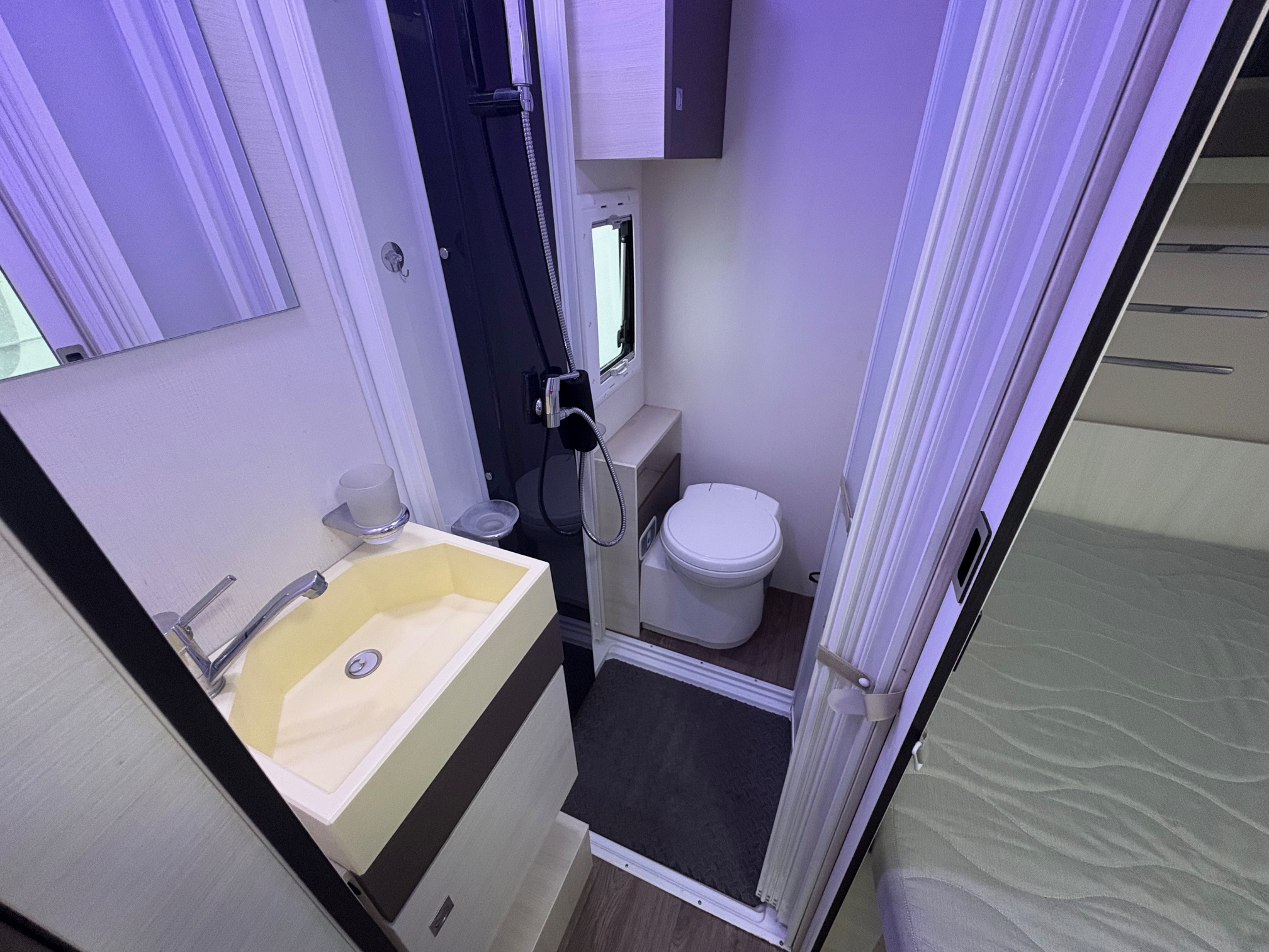 Camping-car avec lit à la française et lit pavillon