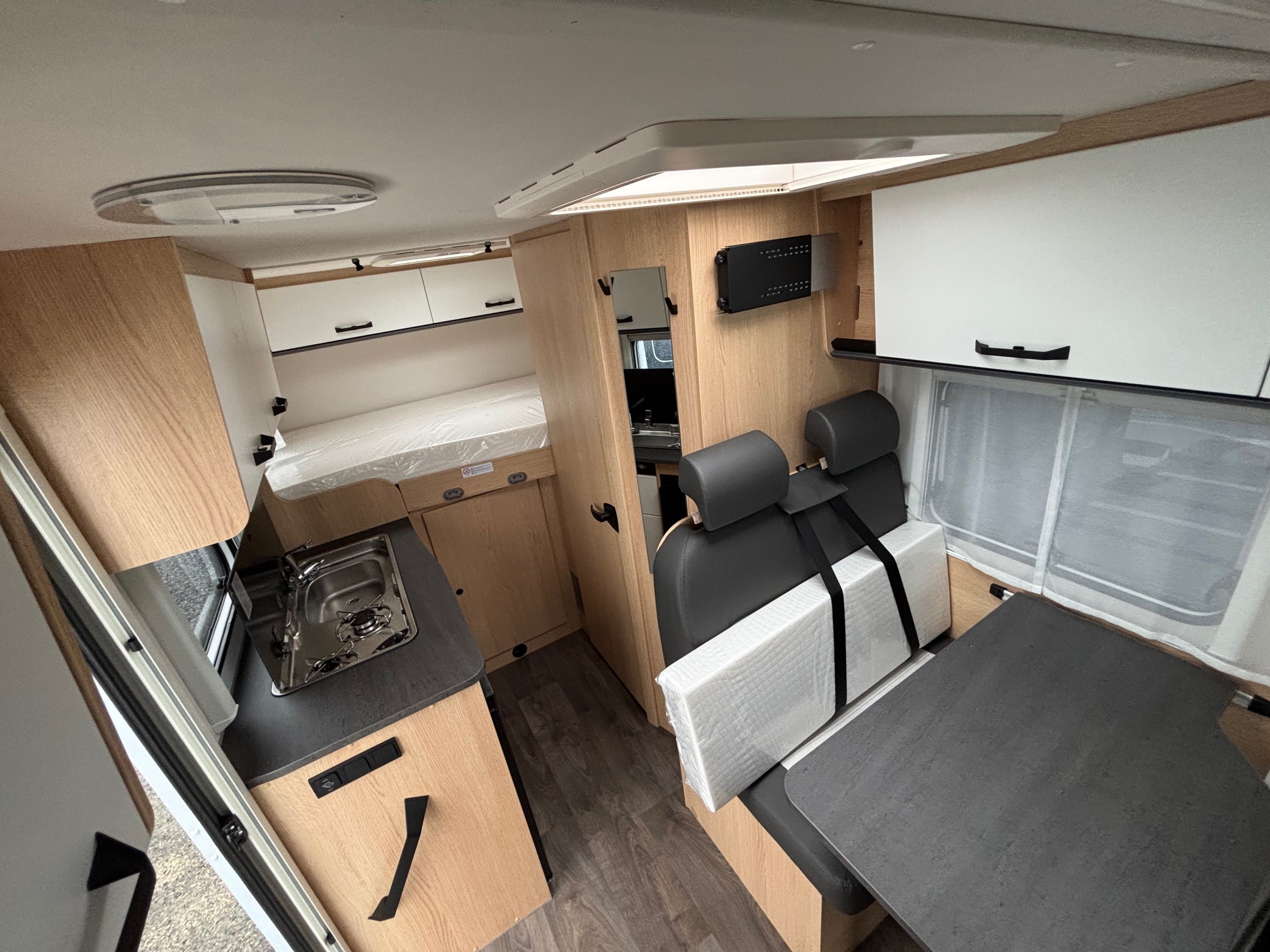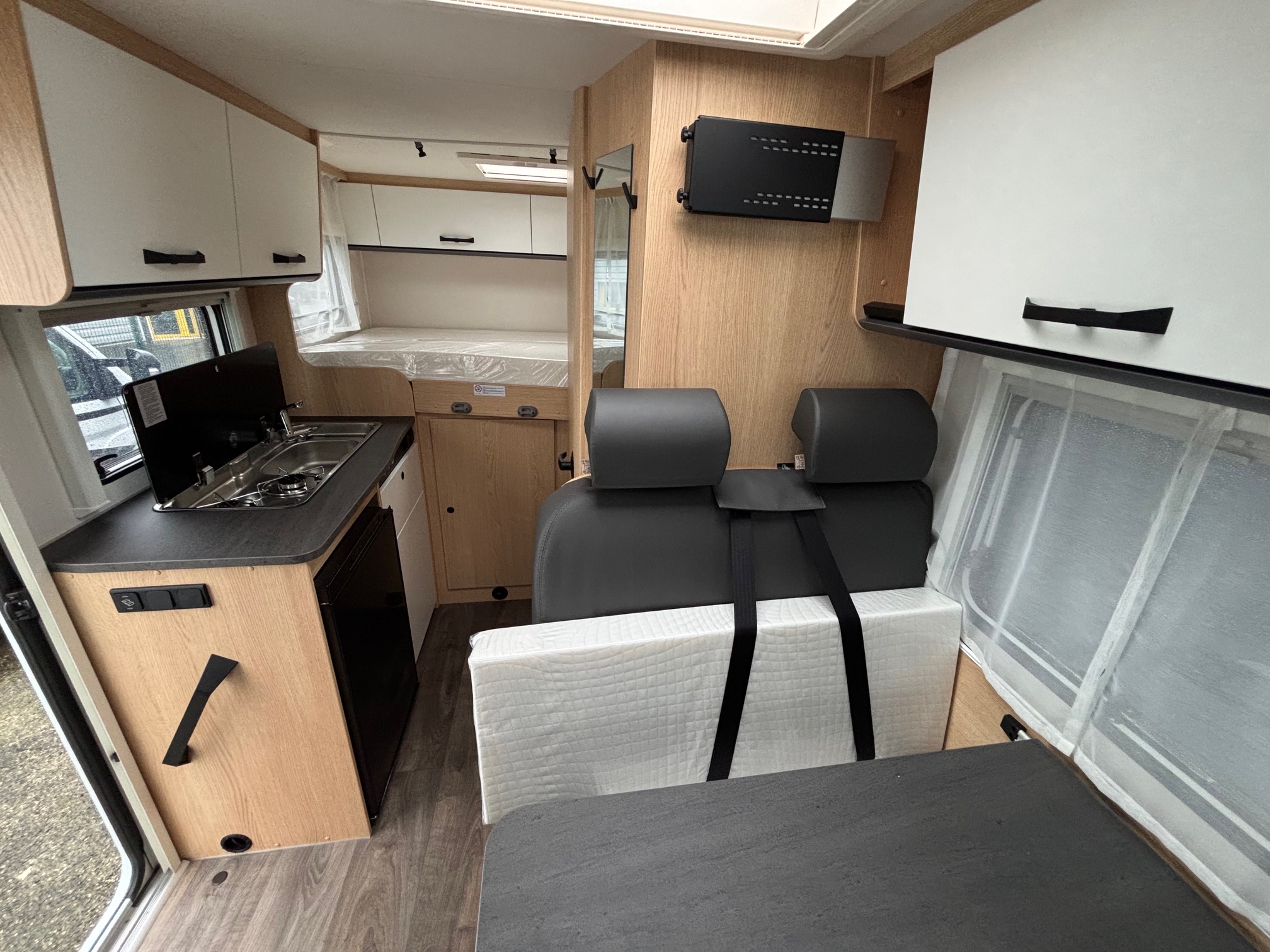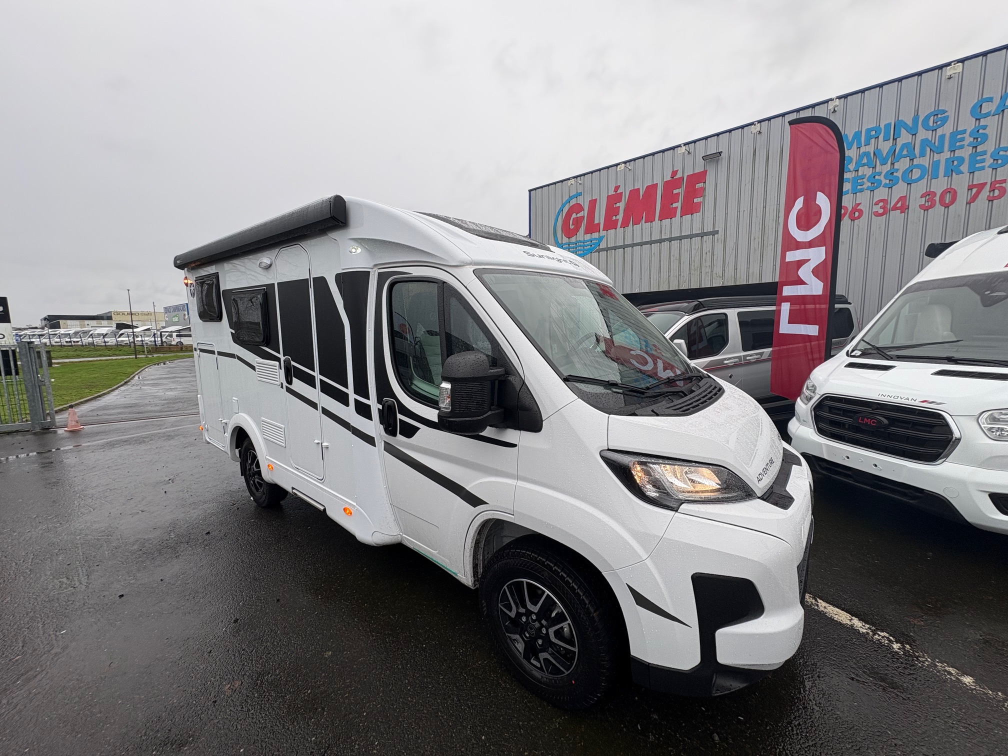 Stickage Adventure, Ambiance intérieure Adventure, Lanterneau panoramique de cabine, Portillon de service côté gauche, Modification des lits jumeaux en lit double, Pack One noir (store extérieur, porte-vélos 3 rails), Bandeau lumineux entre feux arrière, Porte cellule avec moustiquaire, Miroir avec patères, Lanterneau panoramique 70 x 50 cm, Lanterneau transparent 40 x 40 cm, Pare-chocs avant laqué, Jupe du pare-chocs avant de couleur noire, Feux antibrouillard, Jantes aluminium 16″