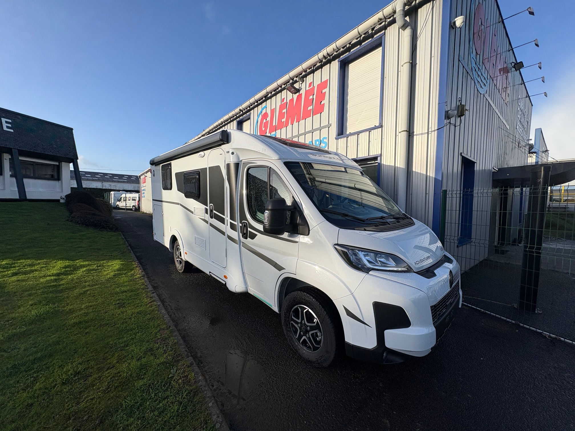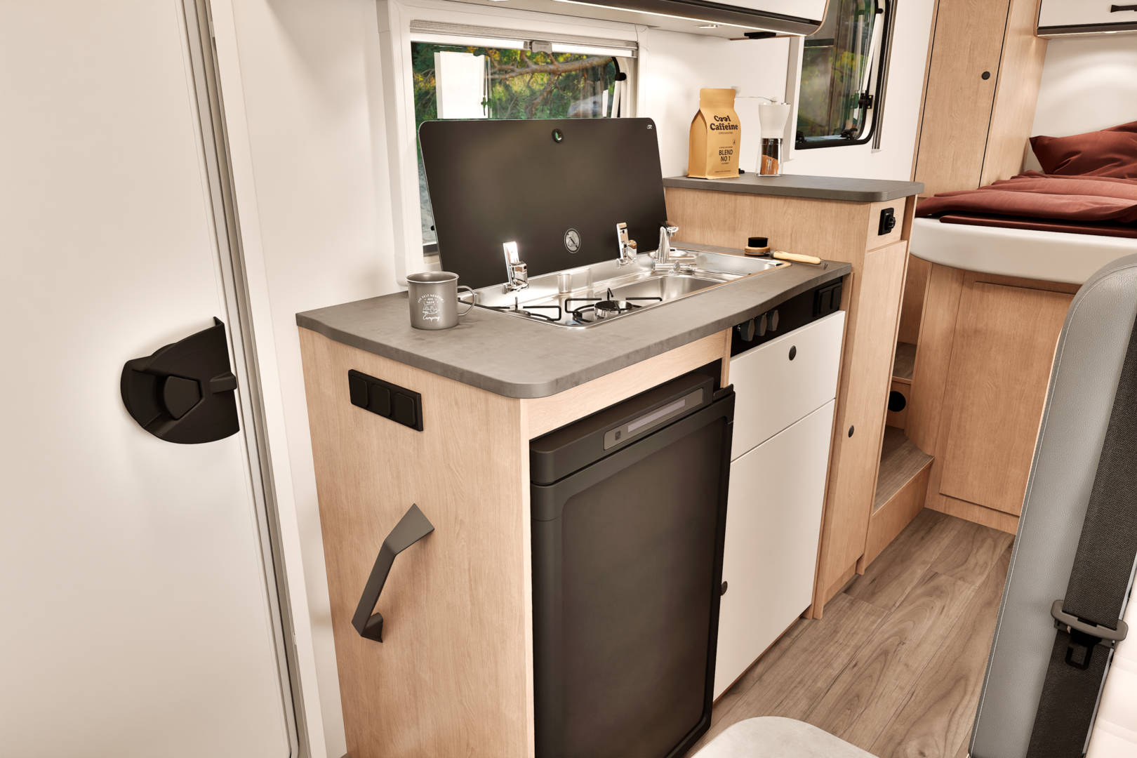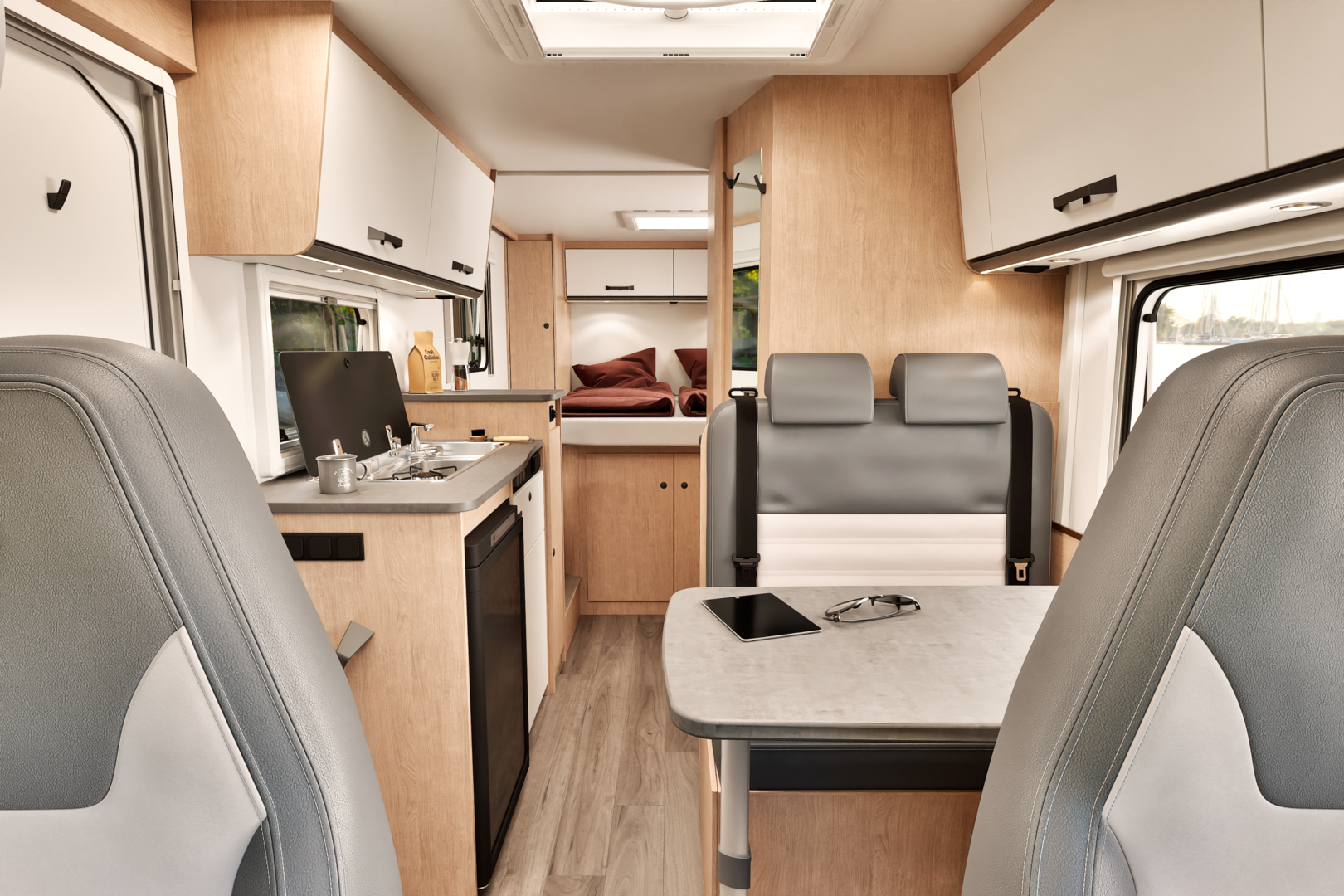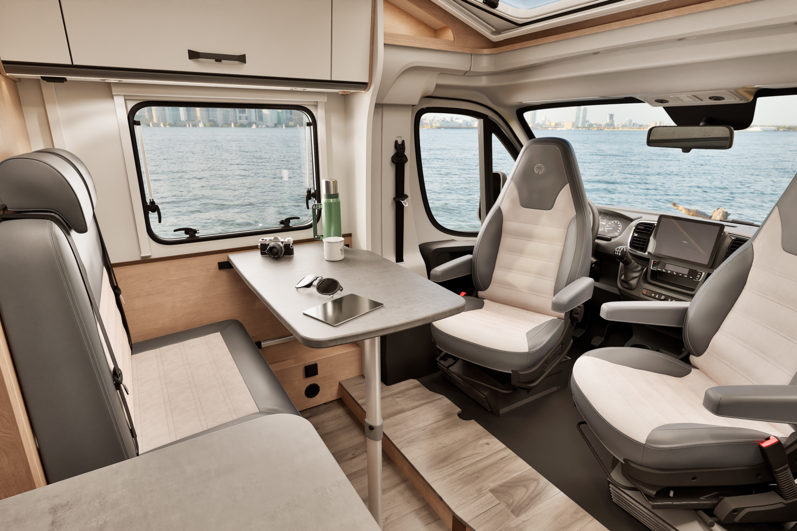 Stickage Adventure, Ambiance intérieure Adventure, Lanterneau panoramique de cabine, Portillon de service côté gauche, Modification des lits jumeaux en lit double, Pack One noir (store extérieur, porte-vélos 3 rails), Bandeau lumineux entre feux arrière, Porte cellule avec moustiquaire, Miroir avec patères, Lanterneau panoramique 70 x 50 cm, Lanterneau transparent 40 x 40 cm, Pare-chocs avant laqué, Jupe du pare-chocs avant de couleur noire, Feux antibrouillard, Jantes aluminium 16″